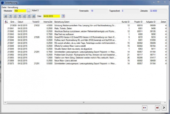 Sie soll im Zuge dieses Projektes durch eine modernere Lösung in C# und mit einer angepassten Datenbank ersetzt werden. Die neu entwickelte Lösung wird in einem ersten Schritt die Grundfunktionalitäten einer Zeiterfassung abdecken, damit auf dieser Basis die volle Funktionalität der bestehenden Lösung portiert werden kann.