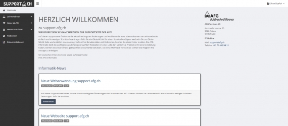 Für die AFG Services AG wurde in der IPA eine Webanwendung erstellt, welche einige alltägliche Probleme vernichtet. Die Prozesse Leihnotebook beantragen und ausleihen, Gäste-WLAN beantragen und erstellen, Informationen ansehen und News-Feed erstellen, Fehler im Active Directory melden, eine Linksammlung für die Informatik führen, wichtige Webseiten aufrufen und verwalten, und auch Dokumentationen herunterladen und Einträge erstellen, wurden mit dieser Webanwendung automatisiert und vereinfacht. Bis anhin wurden diese Prozesse per Telefon, Email oder mündlich beantragt, wobei viele Informationen, welche für die Prozesse von Nöten waren, dabei verloren gingen oder nicht angegeben wurden. Dies erschwerte die einwandfreie Erledigung dieser Prozesse erheblich.