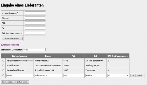 Man kann in der Webapplikation Lieferanten, Artikel und zu diesen Reklamationen erfassen. Diese können, sobald beim Lieferanten gemeldet in der Webapplikation abgeschlossen werden.