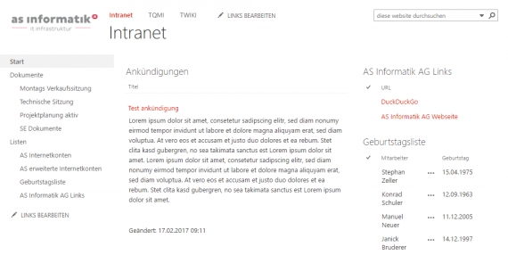 Die aktuelle Intranet-Webseite läuft auf einem SharePoint 3.0 Server. Das Intranet ist jedoch veraltet und sollte darum durch eine neue Version von SharePoint ersetzt werden.