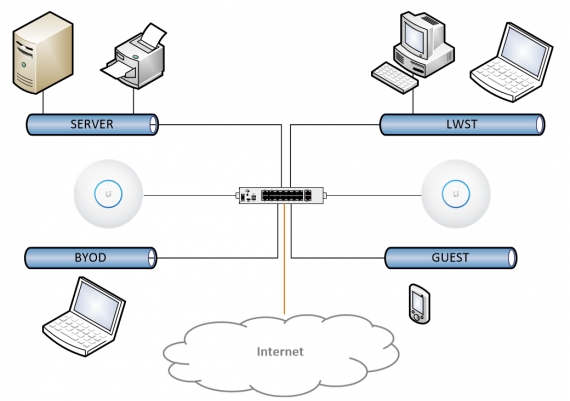 - Servernetz: Beherbergt Server, Drucker und Netzwerkinfrastruktur-Geräte