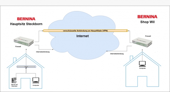 Die verschlüsselte Anbindung (VPN) an den BERNINA-Hauptsitz in Steckborn ist erfolgreich aufgebaut worden.