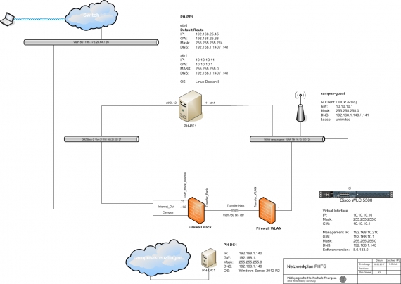 An der Pädagogischen Hochschule Thurgau wird ein eigens programmierter Generator für den Gastzugang ins WLAN verwendet. Der Gast muss sich an das Sekretariat oder an die Bibliothek wenden, um einen Internetzugang zu bekommen. Die Freischaltung wird ebenfalls durch diese beiden Abteilungen innerhalb der Arbeitszeiten durchgeführt. Ausserhalb dieser Zeiten können keine Zugänge erstellt oder freigegeben werden. Der Gast muss eine Benutzervereinbarung unterschreiben, damit dieser einen Zugang ins Internet bekommt. Dies ist bei Veranstaltungen mit mehreren hundert Teilnehmern sehr aufwändig. Die unterschriebenen Benutzervereinbarungen werden gesammelt und an die Informatikabteilung übergeben. Die Benutzervereinbarung wird durch die Informatik auf dem zentralen Datenspeicher abgelegt. Der administrative Aufwand ist mit der momentanen Lösung sehr hoch. Zudem entspricht die momentane Lösung nicht den heutigen Sicherheitsstandards.